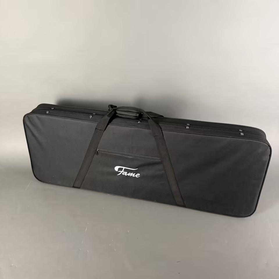 Die Gitarre kommt in einem passenden Rechteckkoffer – Fame Sofcase!