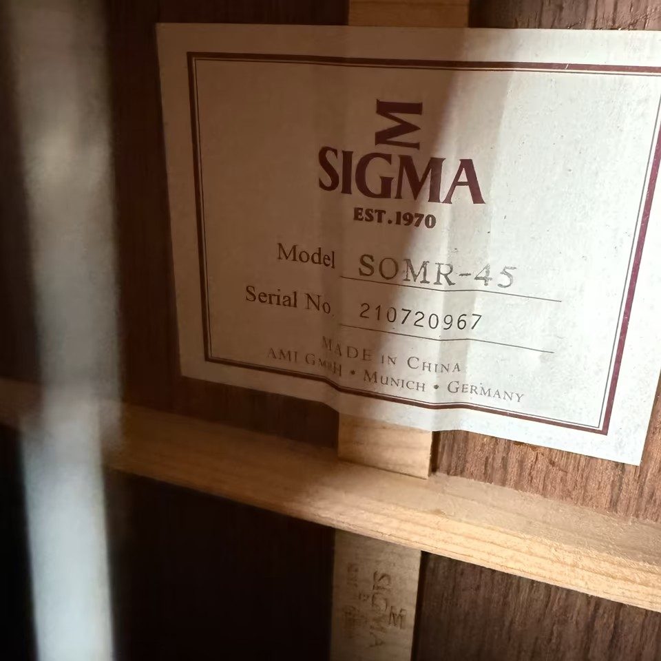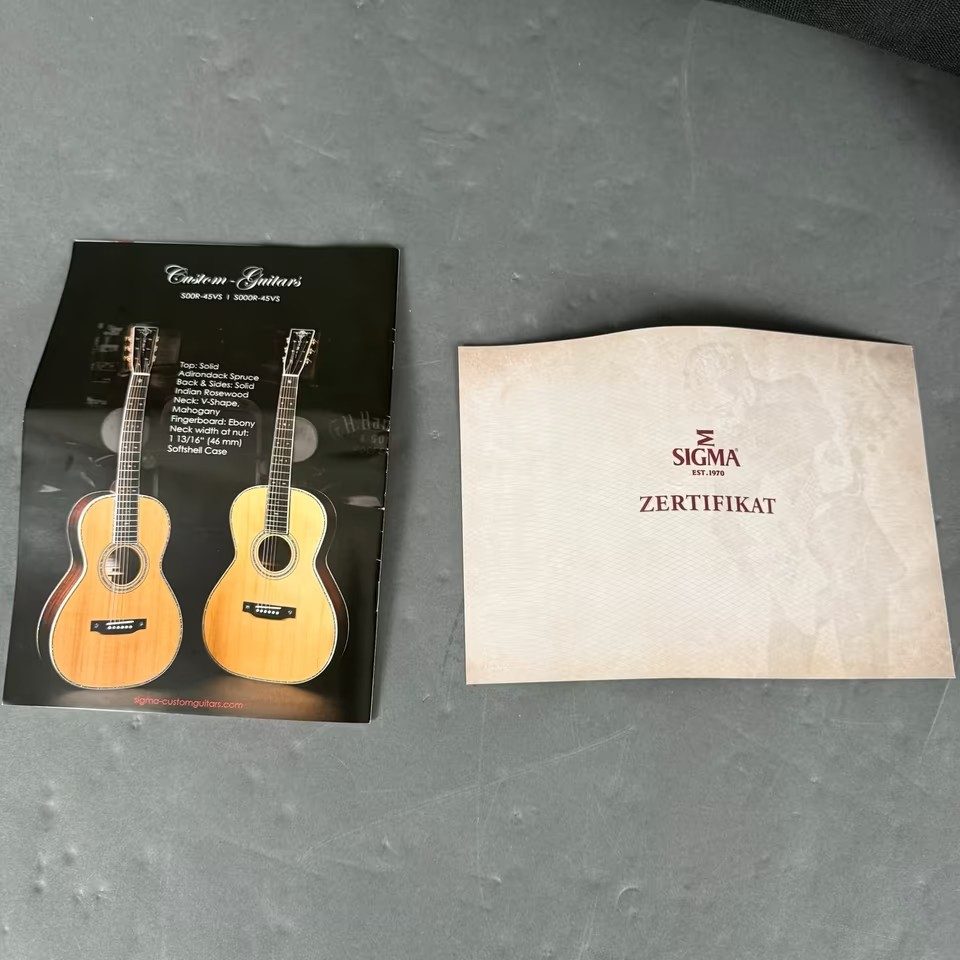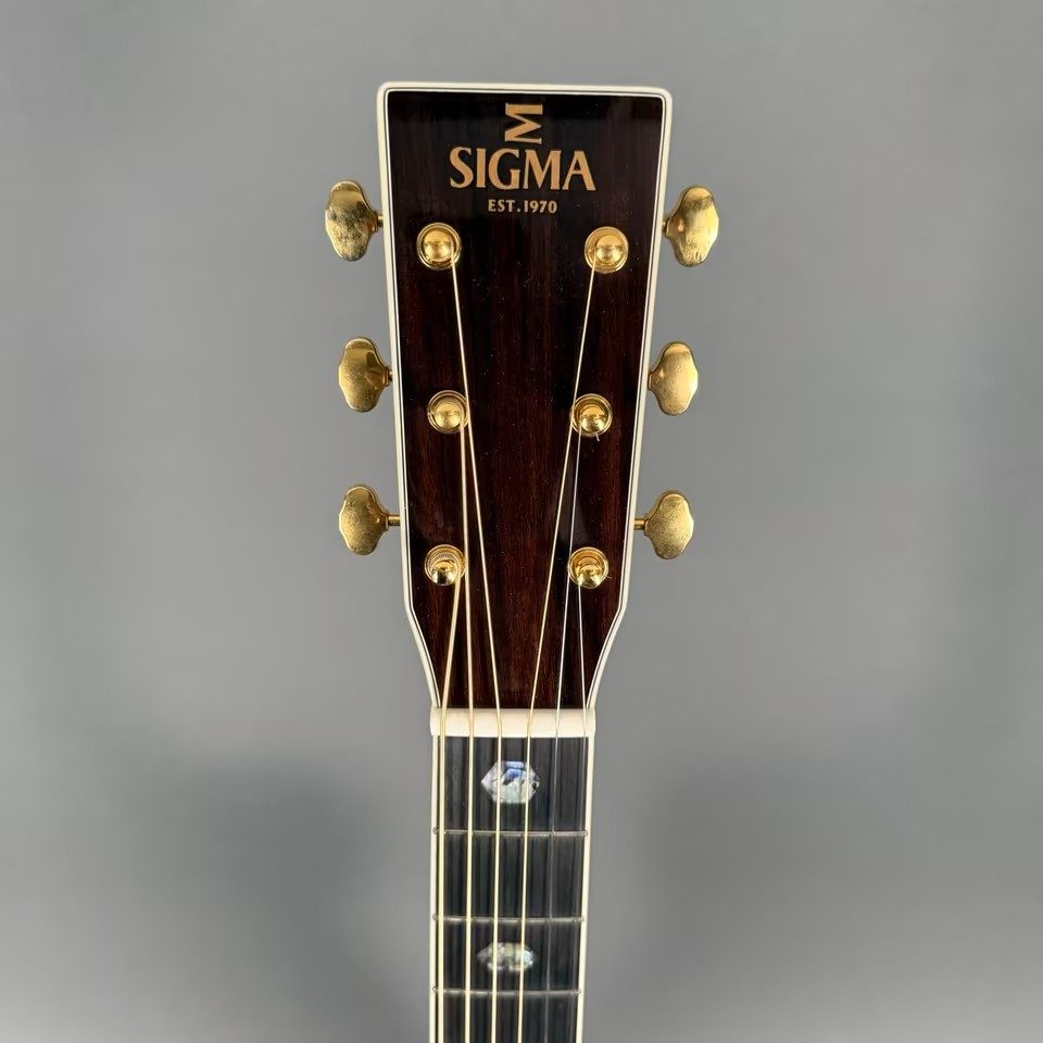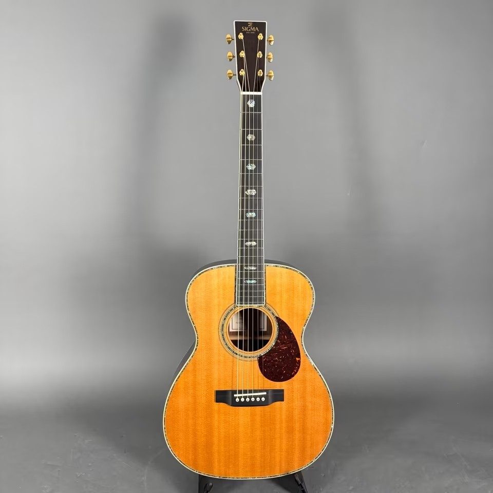 Hier eine absolut neuwertige Sigma SOMR-45 Westerngitarre, vollmassiv, in 000-14-Fret form, Sitka-Fichtendecke, Palisanderkorpus, Ebenholzgriffbrett, inklusive Softcase