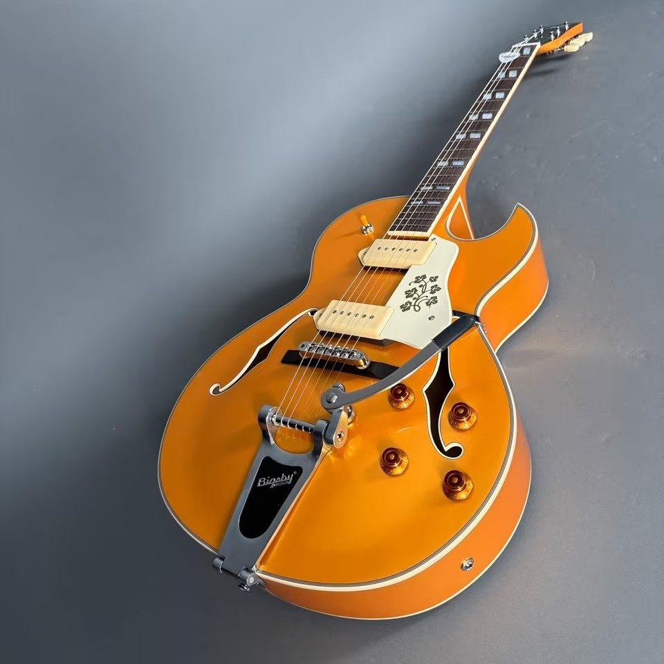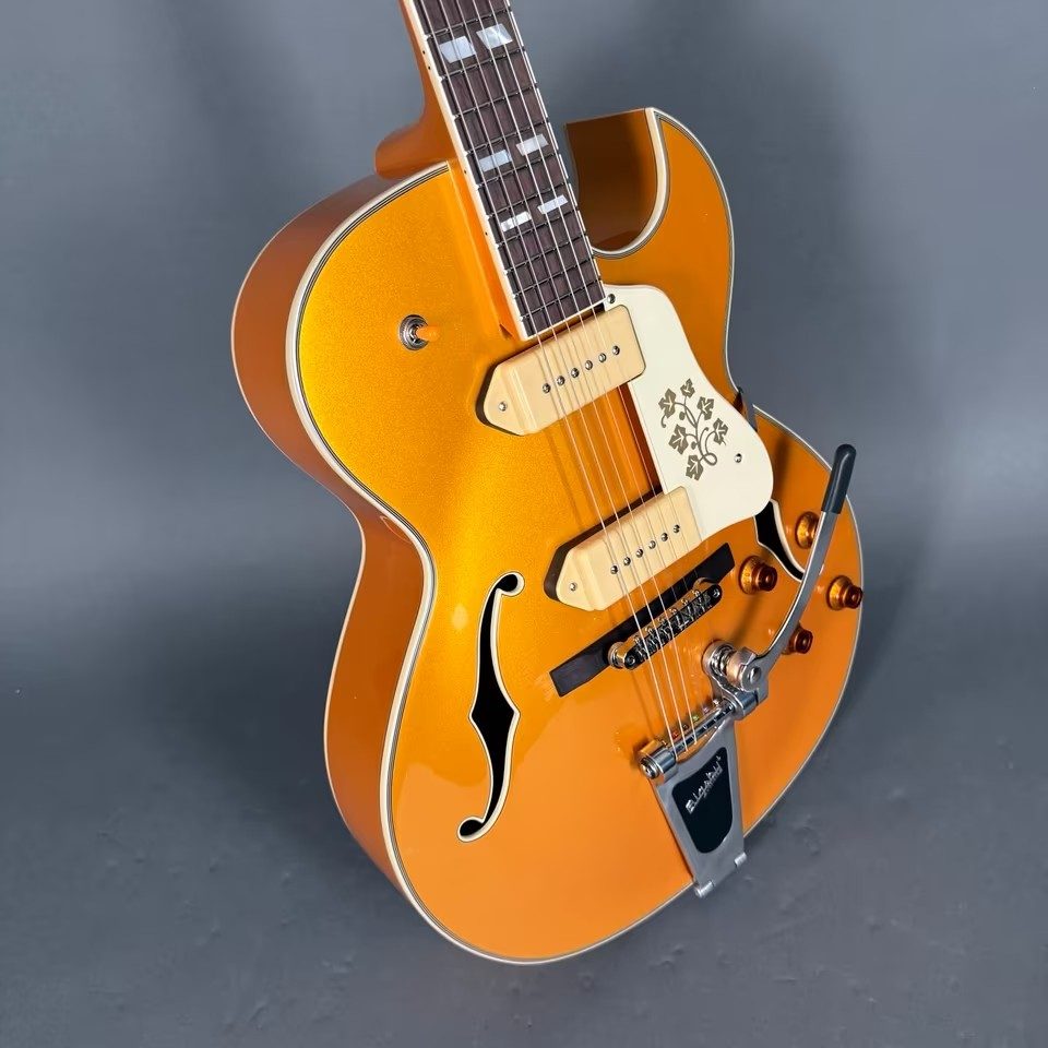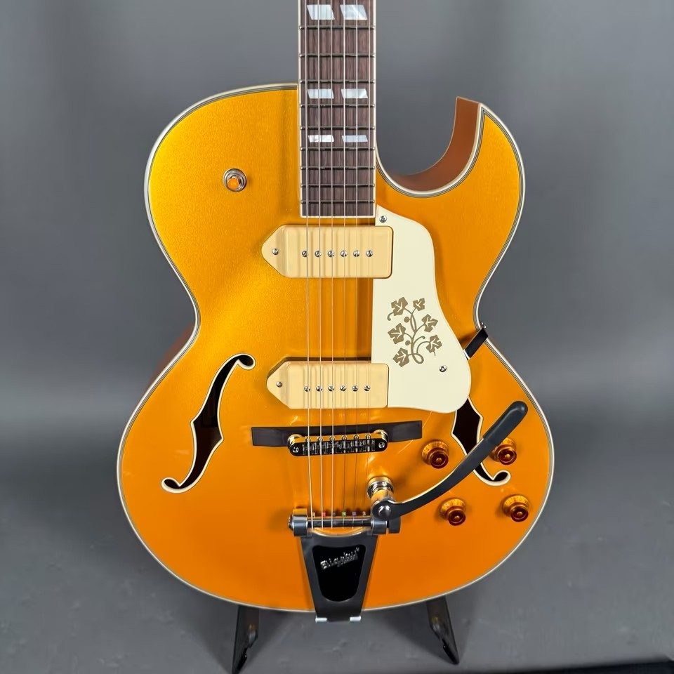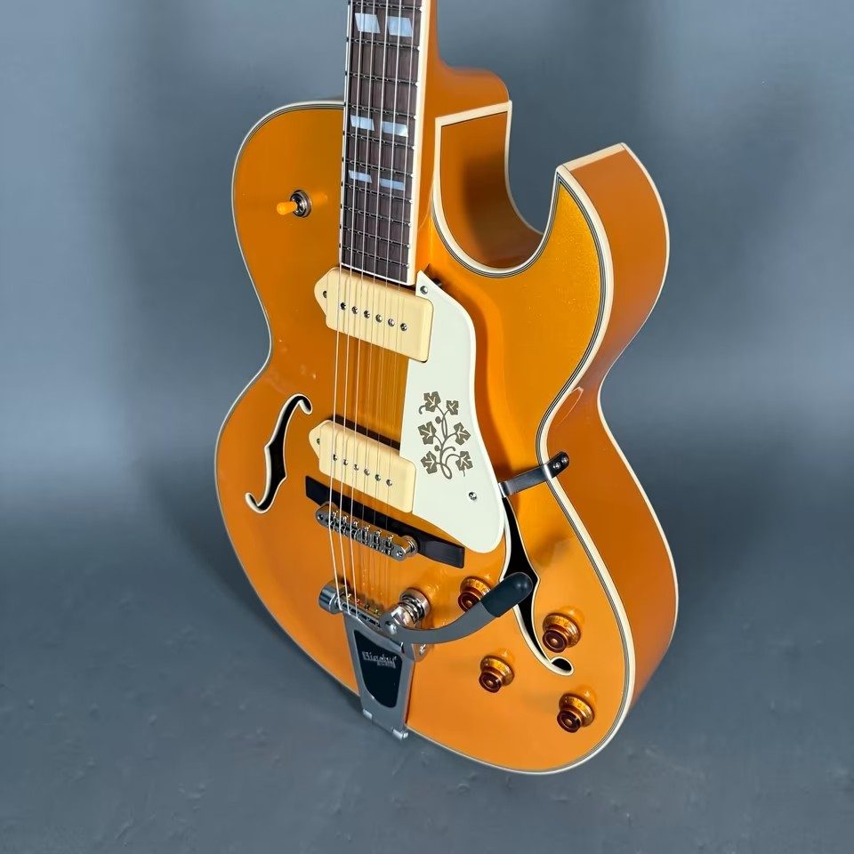 Hier eine wunderschöne, NEUE Stanford CR Fatboy Golden Eye 95 mit Bigsby Tremolo, im original Koffer und OVP!