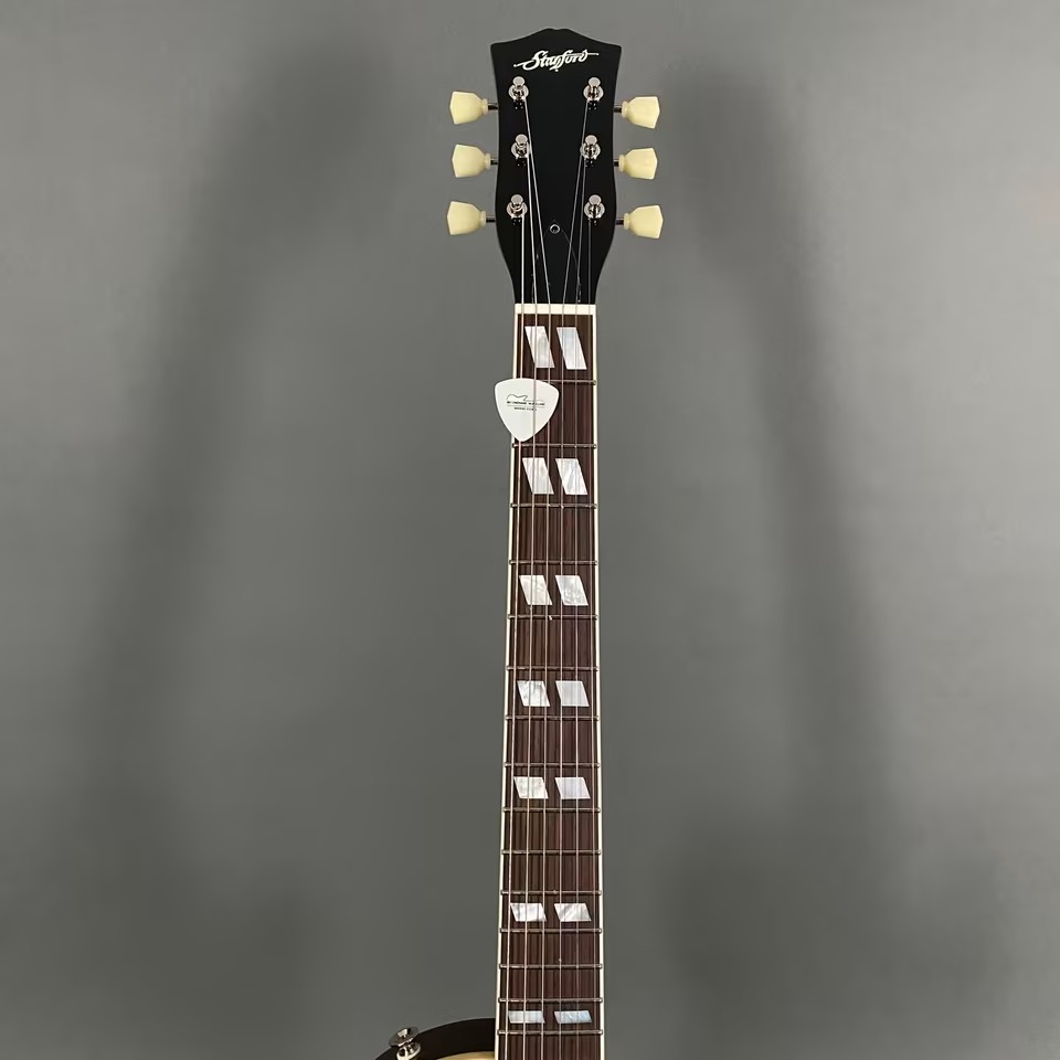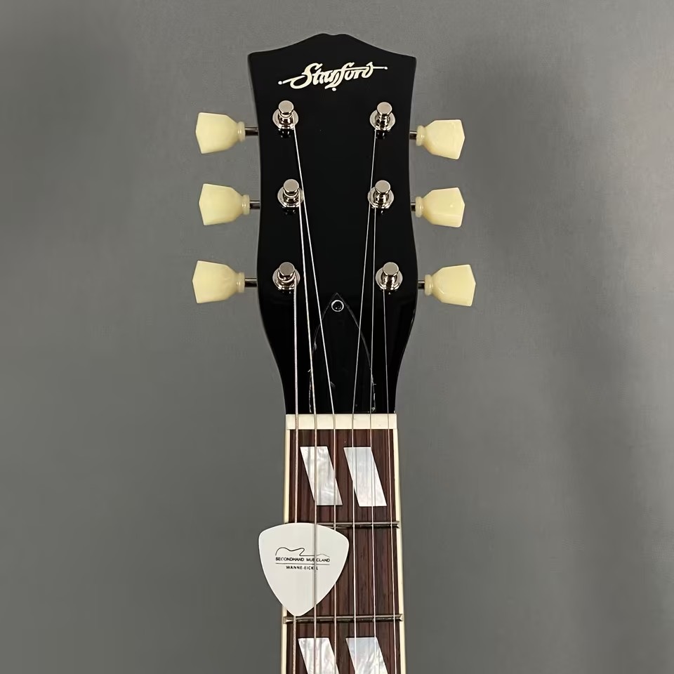 Die Fleetwood aus der Crossroads-Serie ist Stanfords neuestes LP-Style Modell – ein Hommage an den Singlecutklassiker, 628 mm Mensur, Cutaway, eingeleimter Hals mit Humbuckern im PAF Stil.