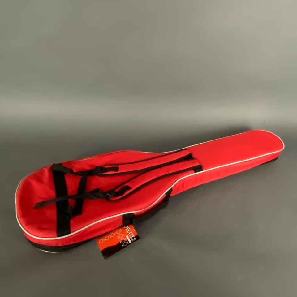 Die Gitarre kommt in einem roten Gigbag von Thomann..