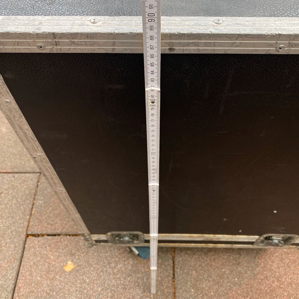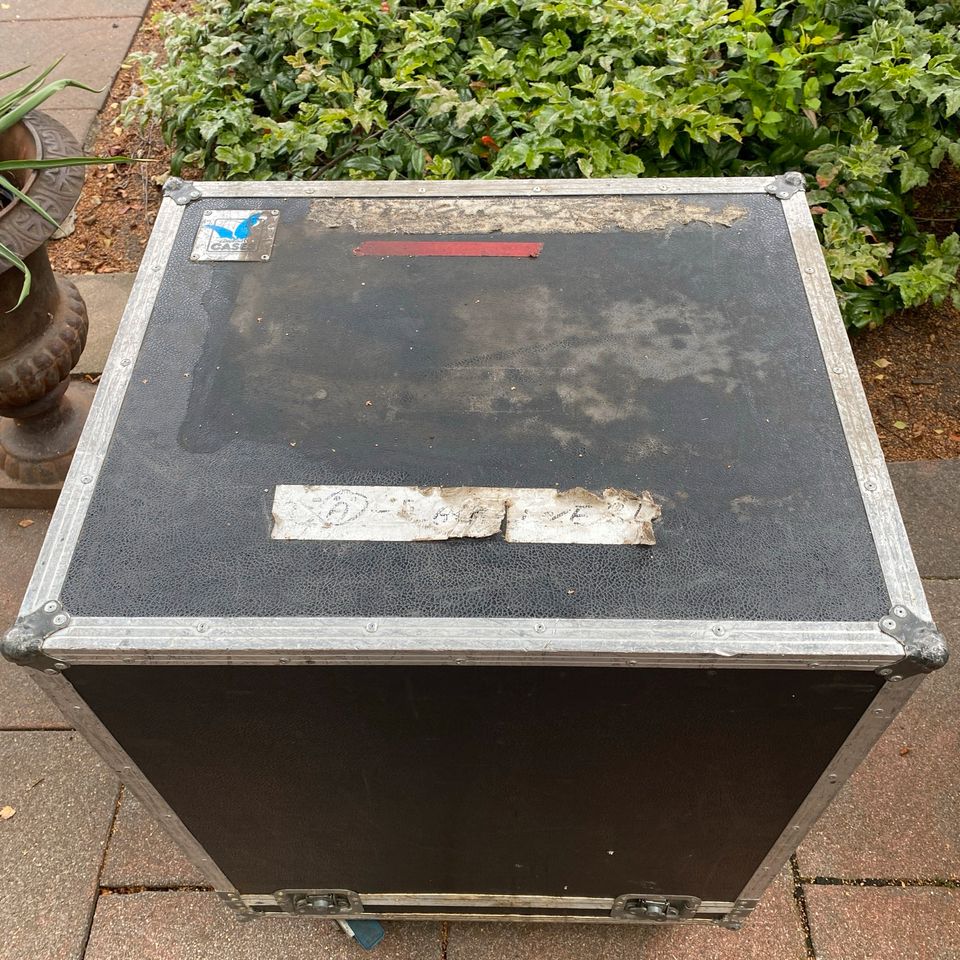 Das Case ist auf Rollen H 88cm B 73cm T 53cm